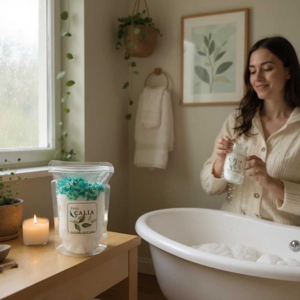 Add a generous handful (about 1/4 to 1/2 cup) of Sea & Salt Soak to your warm bath water. Soak for 15–20 minutes to relax your muscles and refresh your skin. For best results, use 2–3 times a week.