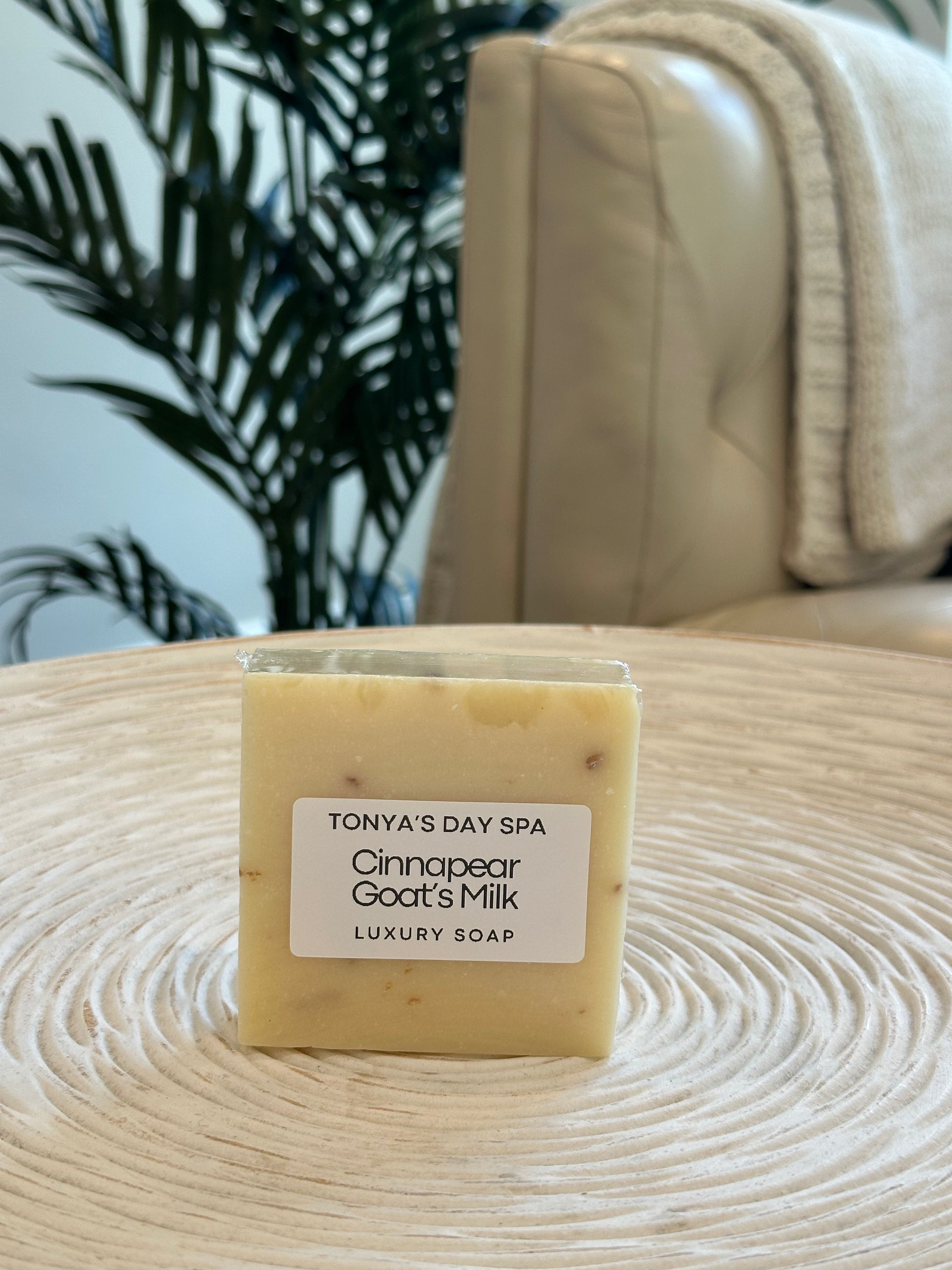 Cinnapear (Goats Milk~ A Creamy, soothing soap that leaves skin feeling smooth and moisturized. Goats milk is rich in vitamins, minerals and helps to hydrate and soften skin.)
